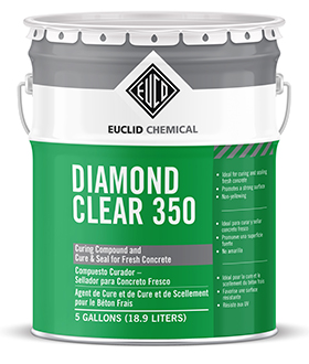 DIAMOND CLEAR 350 is a low VOC, non-yellowing concrete curing compound and cure & seal used to cure and seal exterior concrete. DIAMOND CLEAR 350 is formulated with a unique exempt solvent blend that gives this product all the performance benefits of traditional solvent based curing and sealing products while ensuring compliance with VOC laws in regulated areas. DIAMOND CLEAR 350 can be tinted with Euclid Universal Color Packs, which are available in 33 standard colors.