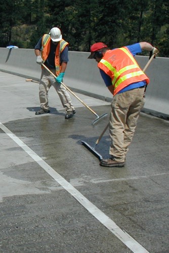 - Abrasion resistance (ASTM C 779) — 7 day old specimen abraded for 60 minutes: 90.2% improvement. This means that the abrasion resistance increased by a factor of 10 and in the time it would take for just 0.01 in. (10 mils) to wear away from the healed/sealed concrete surface, there would have been 0.10 in. (100 mils) worn away from untreated concrete.