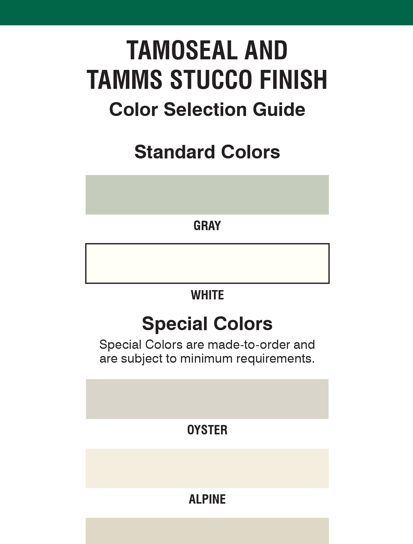 Select language to view:Standard colors for Tammscoat, Tammolastic and Aquastain Architectural Wall Coatings.